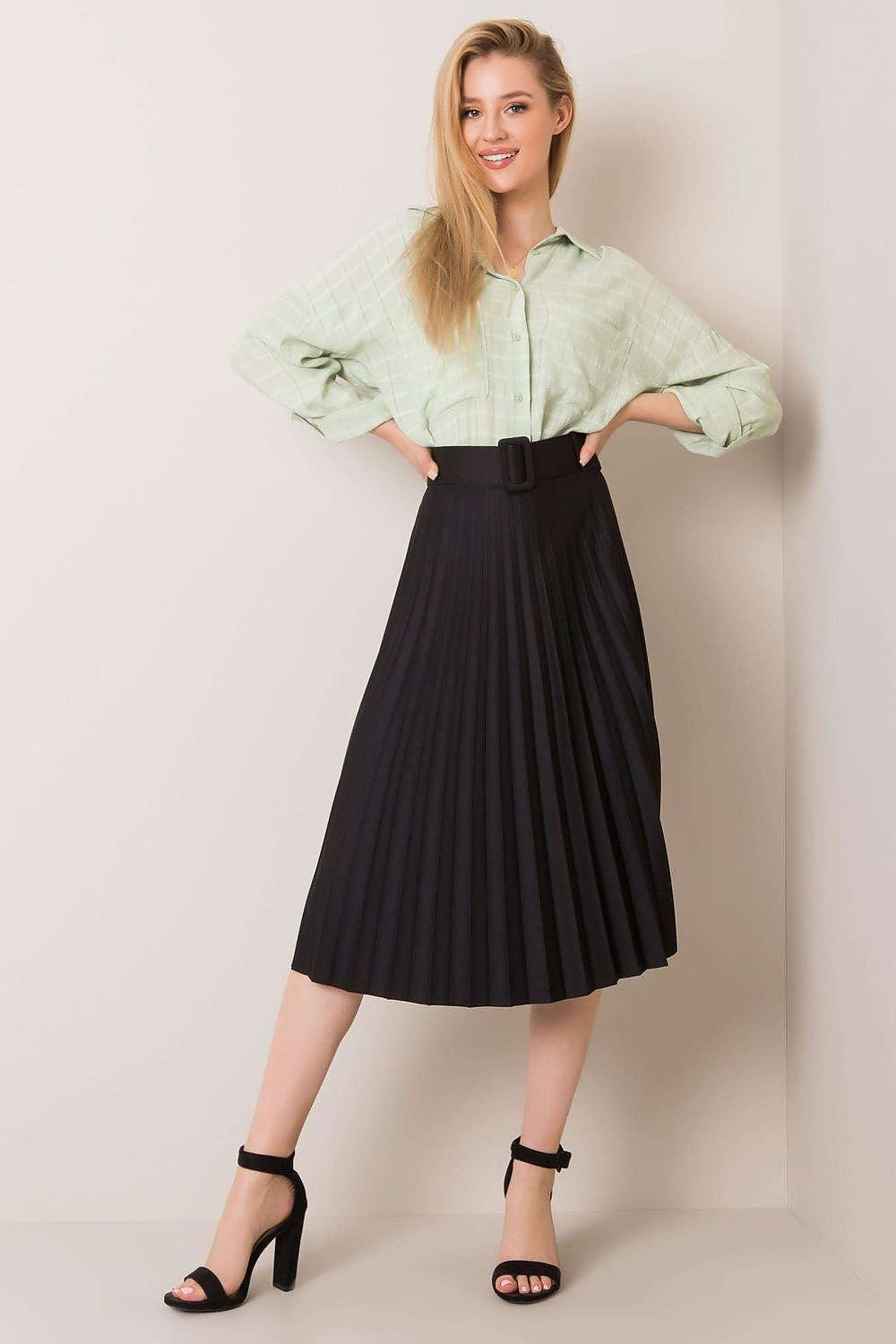 Faltenrock ohne Verschluss, mit elastischem Bund und integriertem Gürtel. Perfekt für viele Gelegenheiten.